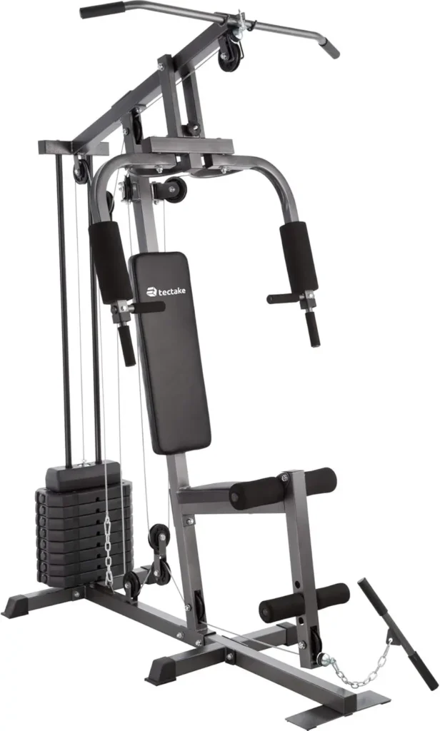 La TecTake Multiestación es ideal para entrenamientos completos en casa. Ofrece múltiples ejercicios en un solo equipo, con ajustables para trabajar diferentes grupos musculares. Su estructura robusta y compacta asegura estabilidad y durabilidad. Es perfecta para quienes buscan una máquina versátil y eficiente para fortalecer todo el cuerpo.